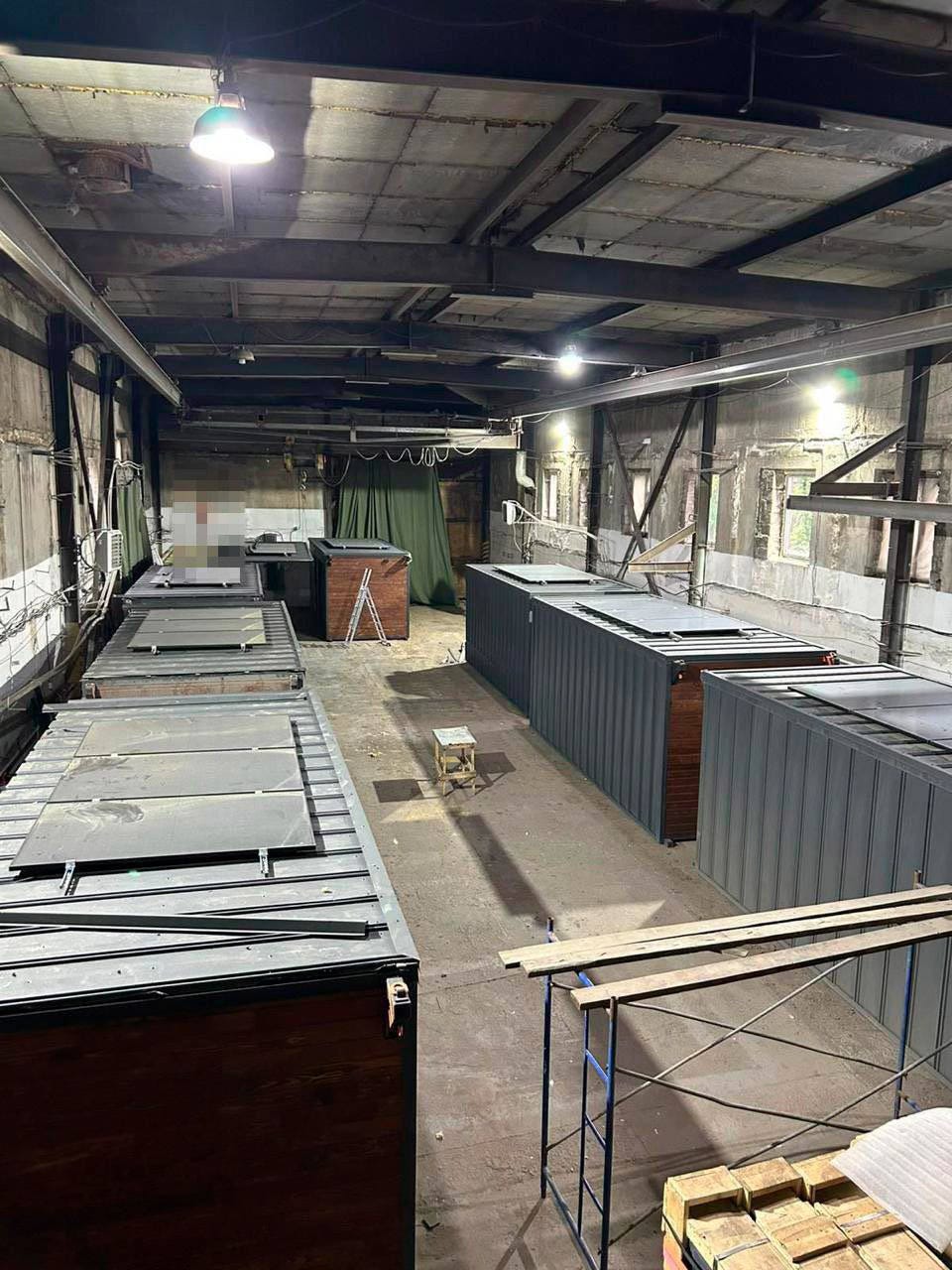 In this image, we see several containers parked inside what appears to be a warehouse — or perhaps a large garage.